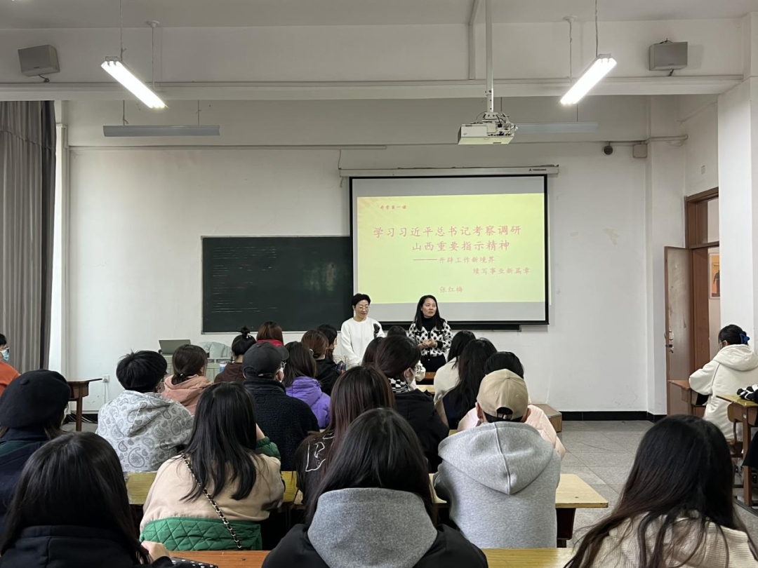 为深入学习贯彻习近平总书记考察调研山西重要指示精神,上好“开学第一课”,英国上市公司365积极部署,细致安排。2月25日下午英国上市公司365党总支邀请我校党委组织部党校办公室主任、思政部专职教师张红梅来我院做专题报告会。会议由英国上市公司365党总支副书记张映主持,大三、大四学生代表及全体辅导员参加学习。