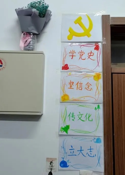 为了让同学们学习党史不单调,作为团支书的畅若妮想了一个办法——观看红色影片,希望通过重温红色岁月,缅怀革命历史来激励大家锐意进取,奋勇前行。2B621宿舍的同学还在闲暇之余齐唱红歌,通过声音感受先辈们不畏艰险、迎难而上的英雄气概。不仅如此,同学们还利用手绘图画装扮寝室,让宿舍保持整洁美观的同时营造了良好的党史学习氛围。