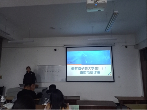 最后,向同学们宣传了如果碰上网络诈骗,我们应该保持冷静,尽快报警,在保护自己的基础上保存好自己的钱财。不碰校园贷,以合法的方式获取钱财。
