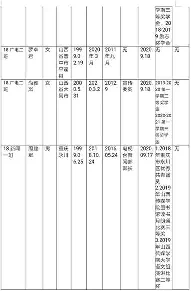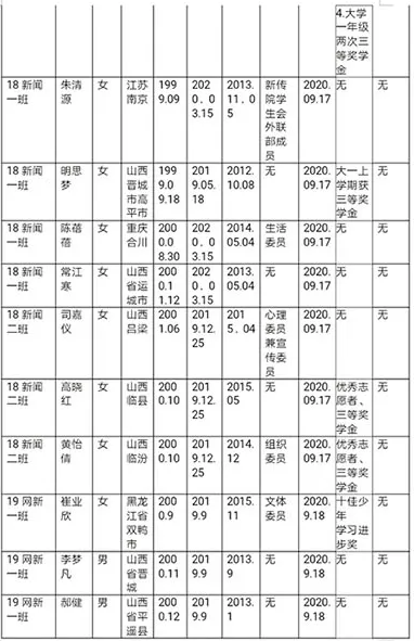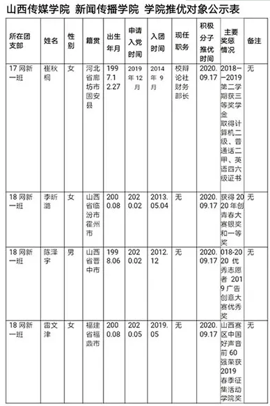 以下同学为英国上市公司3652020-2021学年各班团组织向党组织推荐作为入党积极分子人选名单。为广泛听取群众意见,接受群众的监督,现予以公示,公示时间为7天,有情况可在公示期内向英国上市公司365团委反映。