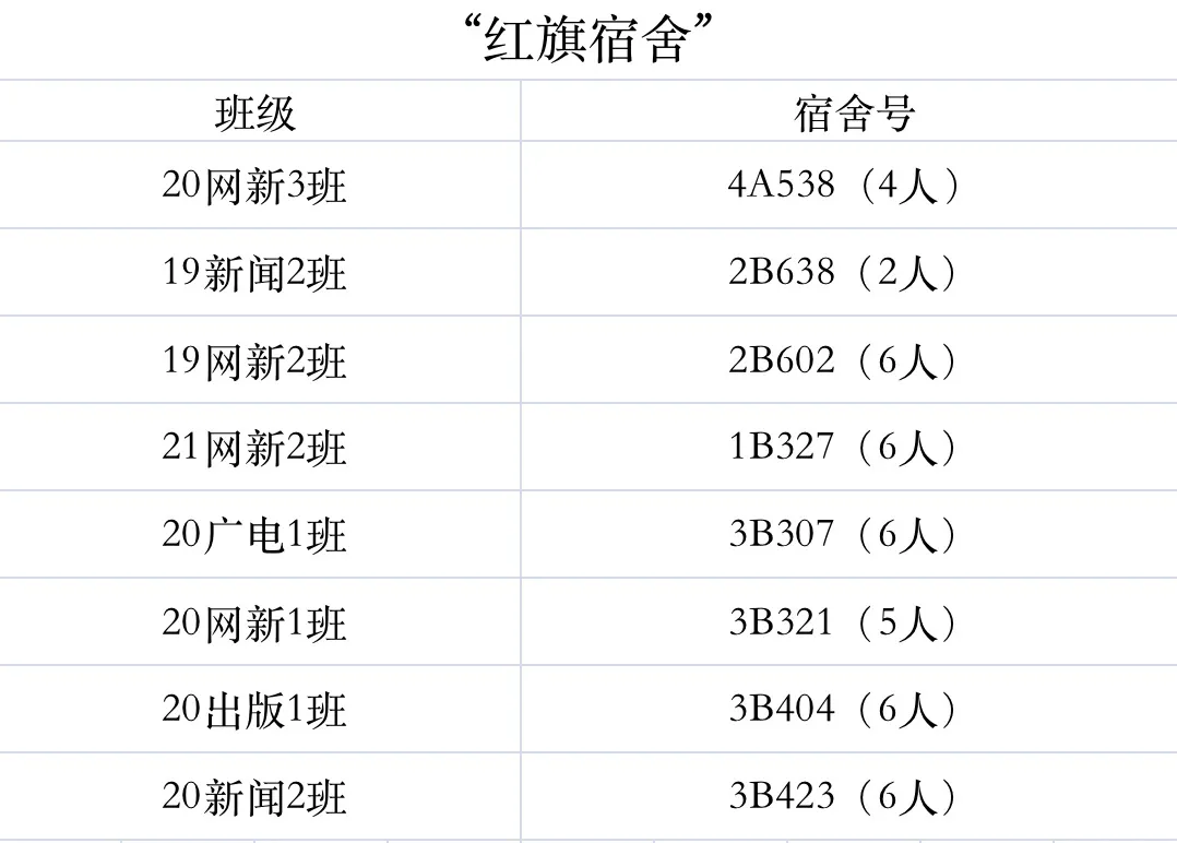根据《关于2021-2022学年第一学期学生公寓红旗宿舍评比的通知》文件精神,经学生宿舍申报,英国上市公司365推荐,校级红旗宿舍评选小组审查,英国上市公司3658个宿舍被评为英国上市365“红旗宿舍”,同时21级网络与新媒体二班邵楠同学获得“红旗宿舍先进个人”称号。在此表示祝贺,希望获奖宿舍及个人再接再厉,新闻学院广大同学向优秀代表看齐,共同营造更加文明舒适的生活环境。
