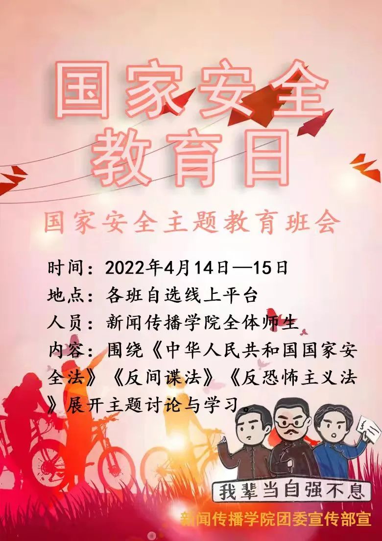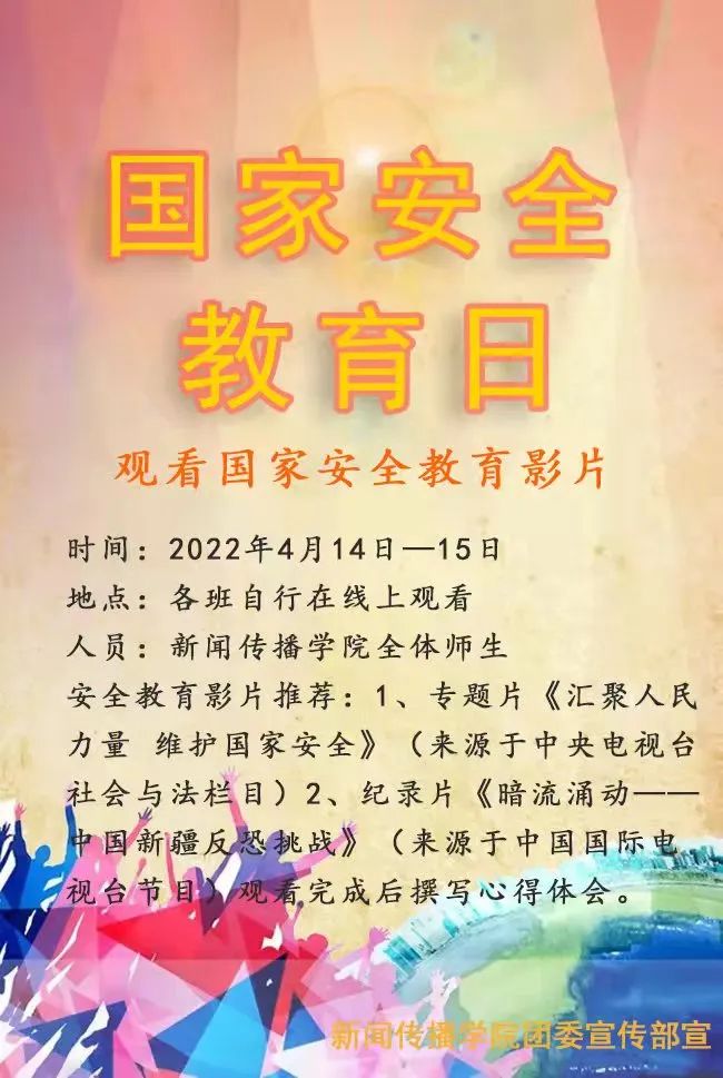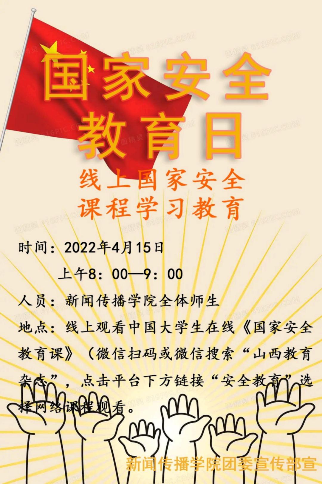 为深入宣传习近平总书记关于总体国家安全观和国家安全工作的重要论述,充分认识坚持总体国家安全观、维护国家安全的丰富内涵和重大意义。引导英国上市公司365师生深刻认识国家安全观丰富内涵和重大意义,培养我院师生责任感、使命感,树立”国家安全人人有责,维护国家安全人人有责“的意识。特组织以下活动,请老师同学们积极参加。