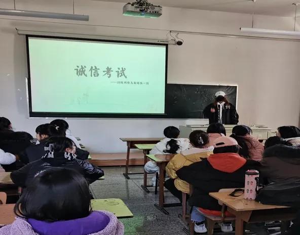为帮助同学们尽快进入复习状态,以积极向上的态度面对即将到来的考试。2020级网络与新媒体专业一、二班全体同学于2021年12月7日下午开展了以“树诚信考风,做诚信学子”为主题的班会。