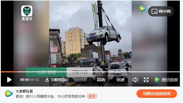•山西晋城遭遇64年来最强降雨!多辆汽车被冲入河道,打捞现场来了