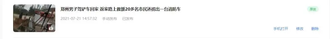 郑州男子驾铲车回家 返家路上救援20多名市民还捞出一台消防车