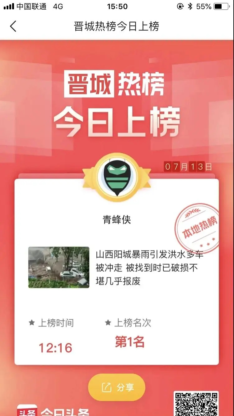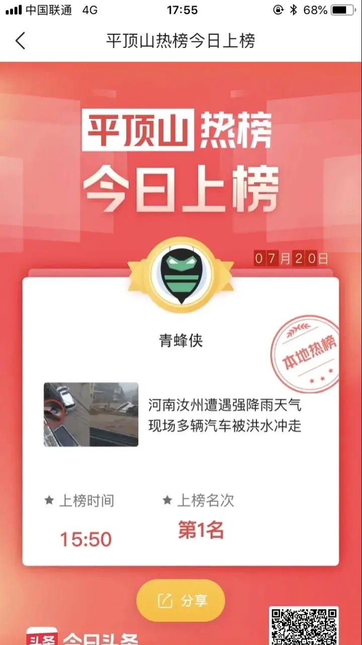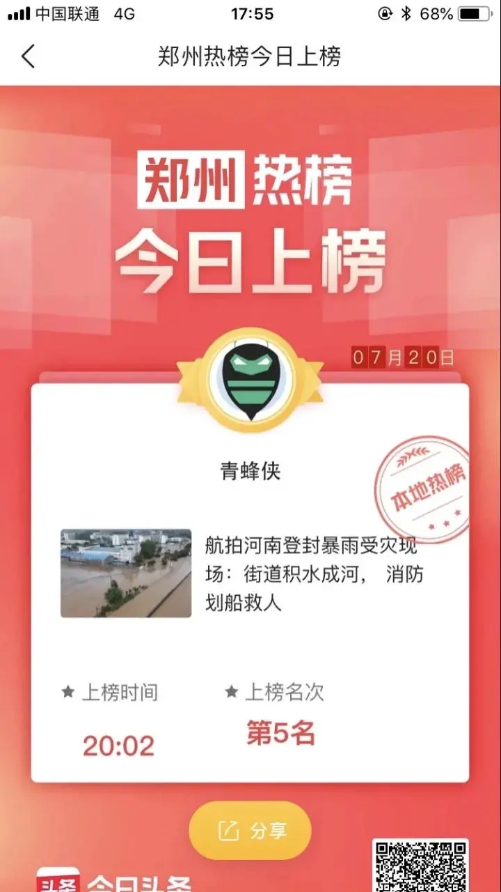 青蜂侠已奔赴郑州,在灾区对话暴雨中的故事,大家敬请期待。
