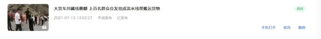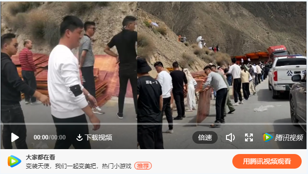 •大货车川藏线侧翻 上百名群众自发组成流水线帮搬运货物