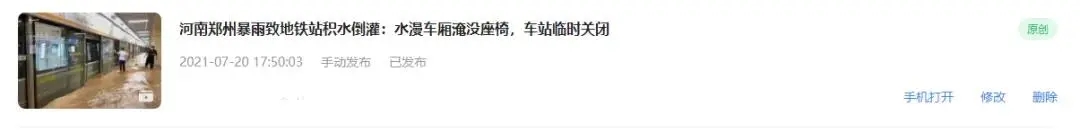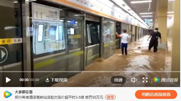 •河南郑州暴雨致地铁站积水倒灌:水漫车厢淹没座椅,车站临时关闭