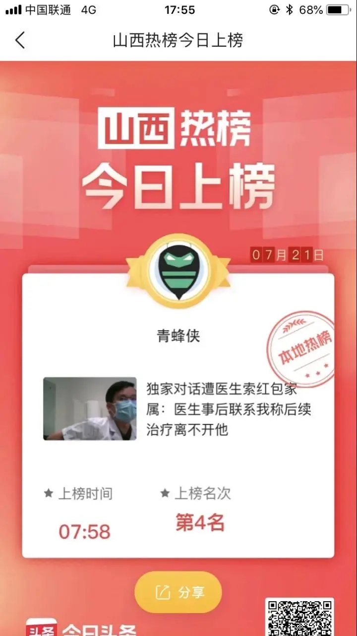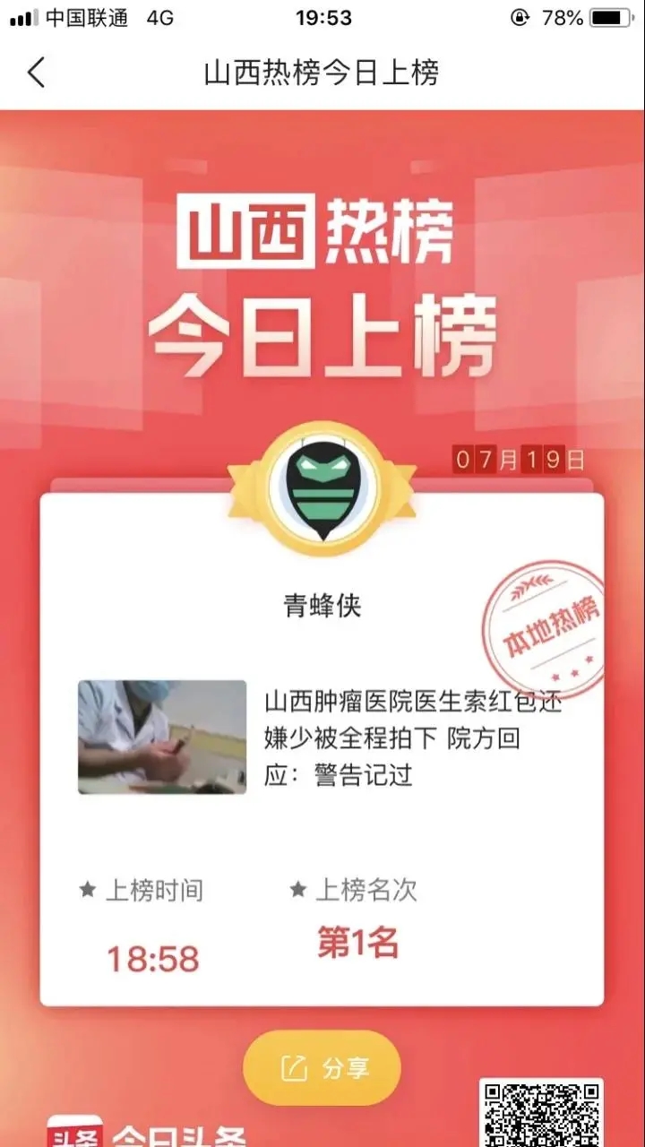 •独家对话山西省肿瘤医院遭医生索要红包家属