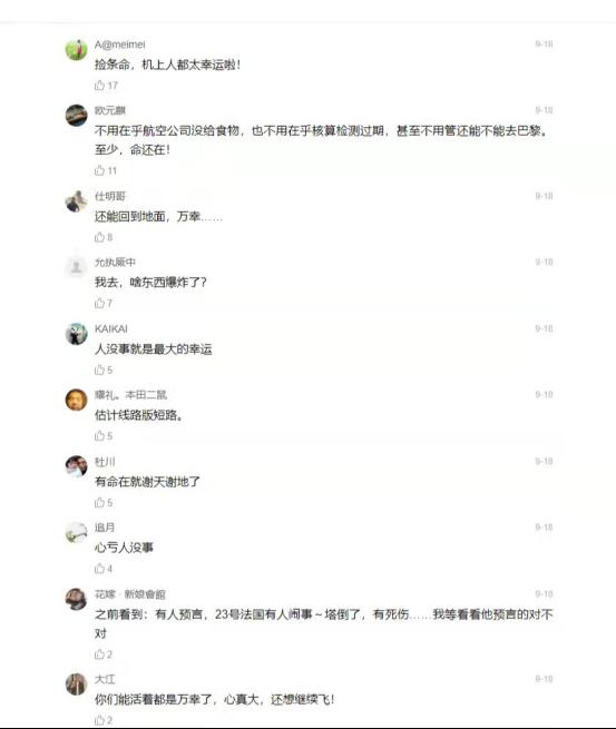 其中法航空中爆炸事故引发网友评论,乘客回忆法航空中起火:听到巨响后有人往前跑 。身上都是喷散物