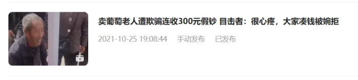 卖葡萄老人遭欺骗连收300元假钞 目击者:很心疼,大家凑钱被婉拒